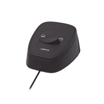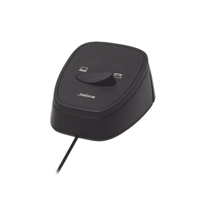 Interruptor manual LINK-180 compatible con auriculares Jabra QD y softphones, sonido de calidad superior y función de cancelación de ruido. Ideal para uso en oficina y formación.