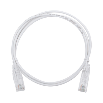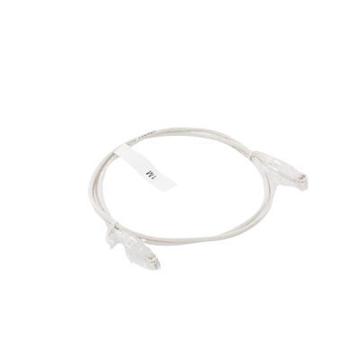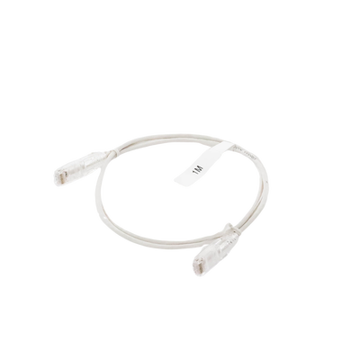 Cable de parcheo LP-UT6-100-WH28 Cat6, 1 metro, con un diámetro reducido (28 AWG) en color blanco. Este cable de cobre asegura una transmisión de datos de hasta 1Gbps y está diseñado para uso en redes LAN. Con conectores RJ45 y terminaciones modulares, este producto destaca por su flexibilidad en instalación y capacidad de crecimiento.