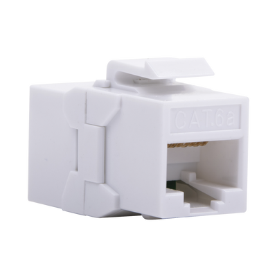Acoplador UTP LPKJUC6A categoría 6A color blanco alto rendimiento, ideal para redes de alta velocidad. Tipo: Acoplador, Color: Blanco, Nivel de desempeño: Categoría 6A, Aplicación: Sin blindaje. Alto rendimiento para redes de alta velocidad. Facilita la instalación mediante codificación de colores.