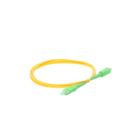 Jumper de fibra óptica LPSM2SCASCAS2 Conector SC/APC Longitud 2 metros tipo monomodo OS2 G.652D. Este cable simplex de 2 mm está diseñado para minimizar la pérdida de señal, ofreciendo transmisión de datos a larga distancia y con un forro de PVC que garantiza resistencia y durabilidad.