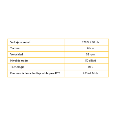 - Motor señal RTS 50MM, para persiana de 3 mts ancho, 4 mts alto.