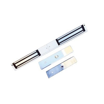 Chapa magnética MAG600D 600 lbs 12vcc 2.38 kg sensor de bloqueo led indicador. Ofrece una fuerza de 2 X 600 libras (280 Kg), con voltajes de 12Vcc (2 X 460 mA) y 24Vcc (2 X 230 mA). Sus dimensiones son 500 x 47 x 25 mm y es fácil de instalar gracias al LED indicador. Ideal para sistemas de seguridad.