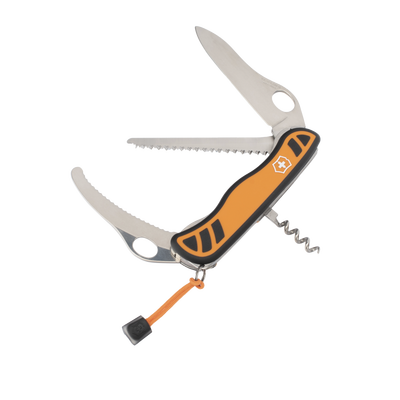 La navaja Victorinox Grande Hunter XT Grip MC9 es una herramienta indispensable para cazadores y aventureros. Con un diseño ergonómico que asegura un excelente agarre y apertura a una mano, esta ligera y compacta navaja de 150 g (altura 20 mm, longitud 111 mm, ancho 35 mm) incluye una hoja redondeada optimizada para eviscerar rápidamente. Fabricada en poliamida, es bloqueable y cuenta con 6 funciones esenciales.