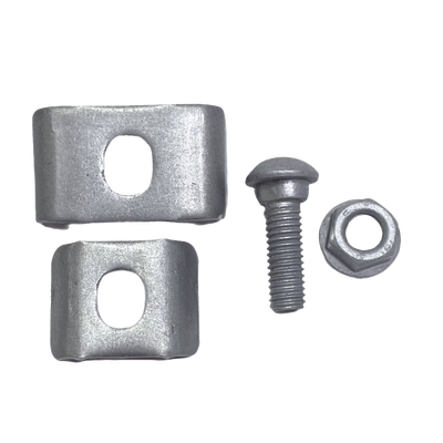 Kit de conexión MG-51-KIT1GBM de CHAROFIL, ideal para uniones en charolas. Incluye 1 clema mediana bimetálica, 1 clema pequeña bimetálica, 1 tornillo GAC y 1 tuerca GAC. Destaca por su resistencia a la corrosión y su instalación rápida, garantizando una unión duradera y fiable en exteriores.