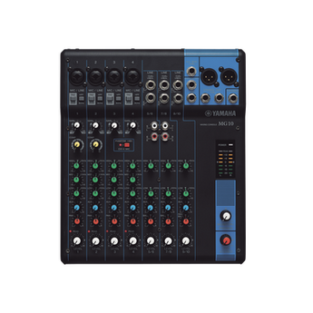 Mezcladora de audio MG10 de Yamaha, equipada con 10 canales y hasta 4 entradas de micrófono. Su diseño sólido y flexible asegura un sonido limpio y sin procesar, ideal para grabaciones y presentaciones en vivo. Incluye alimentación phantom de +48V, preamplificadores D-PRE, y compresores de mando único, ofreciendo un máximo rendimiento de calidad de sonido.
