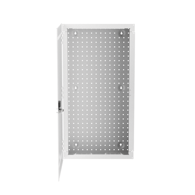 El gabinete multiusos para montaje en pared está diseñado para albergar conectividad de punto de transición y proporcionar un espacio para montar equipos de red empotrados en la pared, al mismo tiempo que brinda flexibilidad para acomodar movimientos futuros. El gabinete está construido con acero de calibre 18 y con accesorios con un diseño de empujar/tirar. Tiene una puerta con cerradura y está diseñada para permitir una ventilación adecuada para su uso con diversos equipos, entre otros, dispositivos AV u ONT, conexiones de cobre y conexiones de fibra.