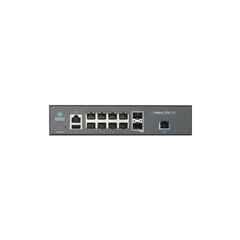El Switch inteligente MX-EX2010XXA-U de Cambium Networks ofrece un rendimiento de 20 Gbps y cuenta con 8 puertos RJ45 y 2 SFP. Este dispositivo facilita la automatización de políticas y la segmentación segura de la red, además de garantizar una gestión fácil mediante su administración en la nube, asegurando así una robusta y eficiente solución de red ideal para entornos corporativos.