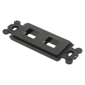 Marco de módulo NK2RMFBL negro tipo keystone, con capacidad para 2 módulos. Diseñado en elegante color negro, cumple con normativas RoHS y permite una instalación eficiente, ideal para organizar redes y conexiones.