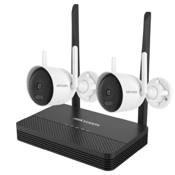 El Kit IP Inalámbrico NKS424WBH de HIKVISION incluye 4 canales de vídeo y 2 cámaras bala de 4 Megapíxeles con lente de 2.8 mm. soporta compresión H.265+ y micro SD de hasta 512 GB. Con conexión WiFi, audio bidireccional y protección IP66, este kit es ideal para exteriores y garantiza una visión clara de hasta 30 mts en oscuridad gracias a su iluminación dual.