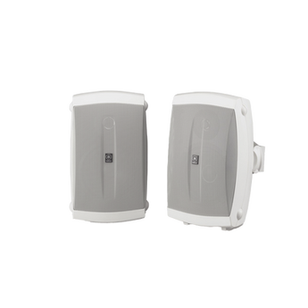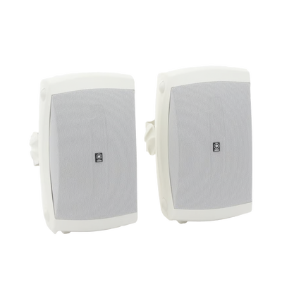 Altavoces de montaje en superficie NSAW150W de Yamaha, ideales para exteriores. Woofer de 5%22 con borde de goma y tweeter de 0.5%22. Color blanco, potencia máxima de 120W y respuesta de frecuencia de 65 Hz a 40 kHz. Diseñados para excelente rendimiento en condiciones climáticas adversas, garantizando durabilidad y un sonido de alta calidad.