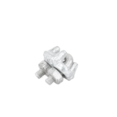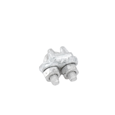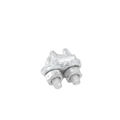 Abrazadera de acero forjado NUDO-18-FJG con recubrimiento galvanizado para torque máximo de 6 N.m, ideal para carga pesada. Fabricada con acero forjado, resistente a la corrosión y diseñada para un uso confiable. Requiere 3 piezas para un amarre seguro, recomendado para retenida de 1/8%22 (SRET318CAM o SRET18DA).