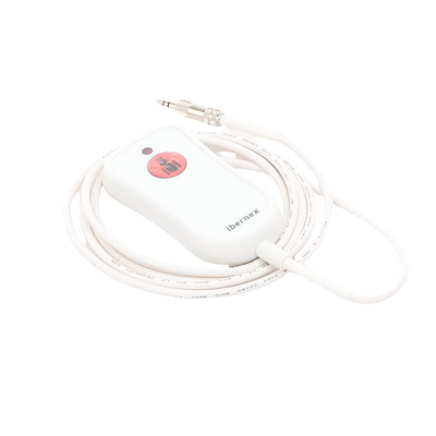 Pulsador de cama con conector mini jack y teclado de membrana para proporcionar mayor protección contra salpicaduras de agua. Se enchufa directamente en uno de los 2 conectores correspondientes del terminal de habitación.