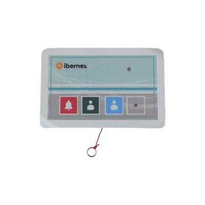 Terminal de cama inalámbrico NX8809 IP54, 400 metros RF 433MHz. Fabricado en material ABS antibacteriano, cuenta con botones de alarma (rojo) y médico (azul) para facilitar la solicitud de ayuda en situaciones críticas.