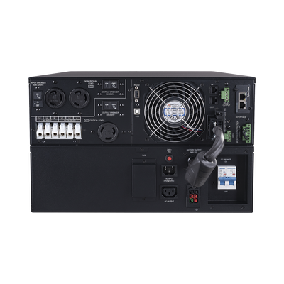 UPS 8000VA OL8KRT 200-240VAC 8000W Onda Senoidal Pura Doble Conversión Online, ideal para servidores de misión crítica. Cuenta con voltaje de entrada de 200-240 Vac, salida de 8000W, tipo de enchufe hardwired, pantalla LCD, y 4 tomas de salida NEMA L6-30R. Protección de equipos esenciales garantizada.