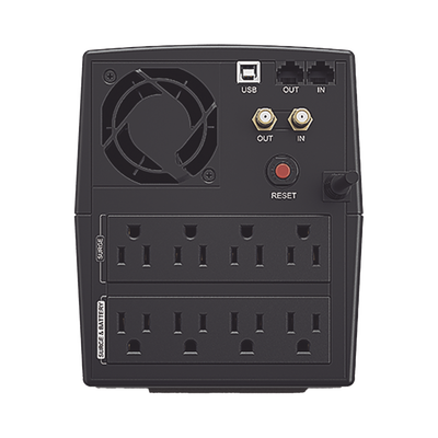 - Total de Tomas: 8 NEMA 5-15R (4 Batería y protección, 4 solo protección)