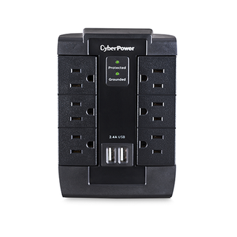 El protector contra sobretensiones Home Office de CyberPower P600WSURC1 evita que los picos de energía causados por tormentas y sobretensiones eléctricas lleguen a los equipos, como computadoras portátiles, pequeños dispositivos electrónicos y cargadores. El P600WSURC1 proporciona 1200 julios de protección y 6 salidas de CA con un solo enchufe de pared. Los dos puertos USB de 2.4 amp cargan rápidamente dispositivos con alimentación USB, incluidas tabletas.