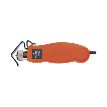 Desforrador ajustable PA1822 para cable de 0.18 a 1 pulgada, fabricado en acero inoxidable. Realiza cortes ajustables en circunferencias, longitudes y espirales. Ideal para fibra óptica, elimina la necesidad de utilizar 2 herramientas y facilita el pelado de varios materiales aislantes.