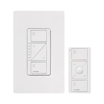 Atenuador inalámbrico PPKG1WWH dimmer de pared PD-6WCL-WH, compatible con focos LED y CFL, control remoto PJ2-3BRL-WH-L01R. Control de luces y persianas desde cualquier lugar e instalación rápida en minutos. Ideal para mayor comodidad al controlar la iluminación.