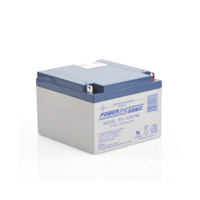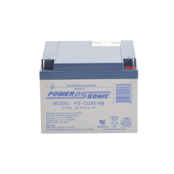 Batería 12V, 26AH PS-12260-NB, diseñada para respaldo, con 5 años de vida útil y reconocida UL. Terminales tipo NB. Tecnología AGM y VRLA para rendimiento y fiabilidad superior. Ideal para respaldar sistemas de seguridad y emergencia.