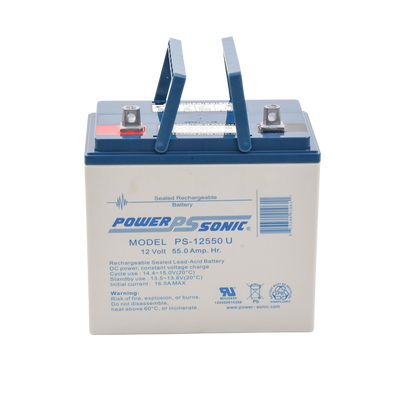 Batería 12v 55ah PS-12550U 5 años de vida útil Certificación UL Tecnología AGM. Esta batería ofrece un diseño de 5 años de vida útil, capaz de suministrar 12V y 55AH, con terminales U. Cuenta con la tecnología AGM para un rendimiento superior y es libre de mantenimiento, asegurando seguridad y fiabilidad en aplicaciones críticas.