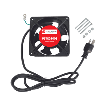 Ventilador 110 VCA PST-E02-003 12 x 12 cm con cable y tornillería adecuada para cualquier espacio. Este ventilador ofrece un bajo consumo energético, funcionamiento silencioso, instalación sencilla, diseño compacto y alta durabilidad. Ideal para mantener un ambiente fresco.