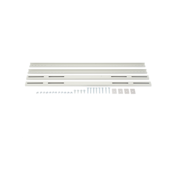 Montaje universal PST-TWR-80 para gabinetes de 30 a 80 cm de ancho, soportando hasta 50 kg. Fabricado en metal con cuerpo de zinc revestido y partes de sujeción de acero inoxidable. Soportes dobles ajustables y diseño elegante en color beige. Incluye tornillería y sujetadores.