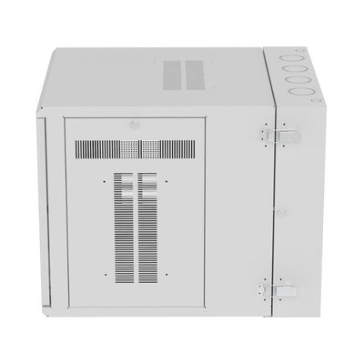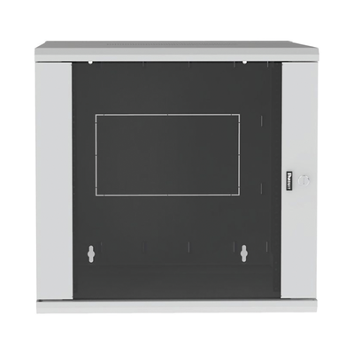 Gabinete de montaje en pared construido en acero, soporta 12 unidades de Rack para equipos de red activos o pasivos. Cuenta con paneles laterales totalmente desmontables y esta diseñado para permitir el control de clima adecuado para uso con diversos equipos de red, así como Switches de alimentación remota (PoE) y fuentes de alimentación ininterrumpida (UPS).