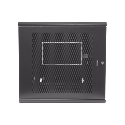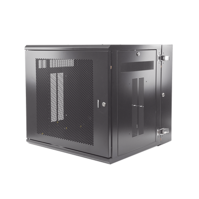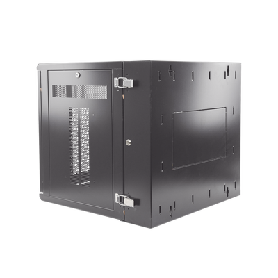 Gabinete de montaje en pared construido en acero, soporta 12 unidades de Rack para equipos de red activos o pasivos. Cuenta con paneles laterales totalmente desmontables y esta diseñado para permitir el control de clima adecuado para uso con diversos equipos de red, así como Switches de alimentación remota (PoE) y fuentes de alimentación ininterrumpida (UPS).