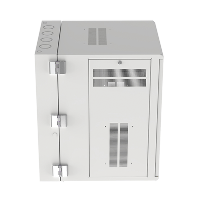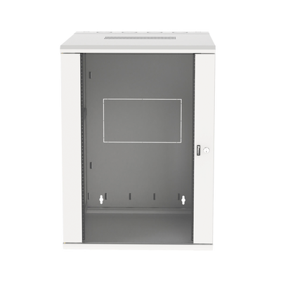 Gabinete de montaje en pared construido en acero, soporta 18 unidades de Rack para equipos de red activos o pasivos. Cuenta con paneles laterales totalmente desmontables y esta diseñado para permitir el control de clima adecuado para uso con diversos equipos de red, así como Switches de alimentación remota (PoE) y fuentes de alimentación ininterrumpida (UPS).