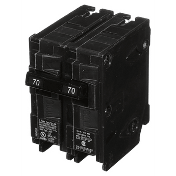 Siemens Low Voltage Interruptores automáticos residenciales Interruptores pequeños termomagnéticos Interruptores - Tipo QP/MP 2 polos 120/240 V AC son circuitos, redes de centro de carga de protección, alimentadores y circuito pequeño interruptores. Tipo: QP/MP Aplicación: Eléctrica, distribución. Norma: UL 489 Tensión nominal: 120/240 V Intensidad nominal: 70 A. Disparo, rango: termomagnético Valor interrupción: 10 AIC Número de polos: 2P