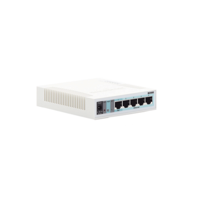 Switch Mikrotik RB260GS 5 puertos gigabit 1 SFP administración por web configuración de VLAN. Código: CSS106-5G-1S, dimensiones 113x139x28mm, sistema operativo MikroTik SwOS, 5 puertos Gigabit Ethernet y una interfaz SFP para conexión adicional. Mejore la seguridad de su red con el filtro MAC ideal para oficinas y pequeñas empresas.