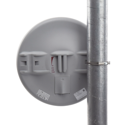 También está equipado con una antena de 21 dBi. Viene completo con una fuente de alimentación, un inyector Gigabit PoE y un anillo de montaje. El dispositivo también es compatible con nuestros sistemas de montaje SXT.