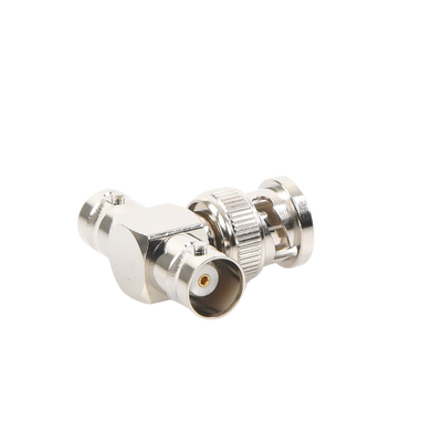 Adaptador en T, de Conector BNC Macho a Doble BNC Hembra, Maquinado.​