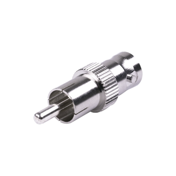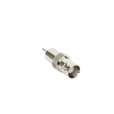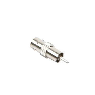 Adaptador de BNC Hembra a RCA Macho tipo Fono para Aplicaciones de Audio-Video, Níquel/ Plata/ Delrin.​