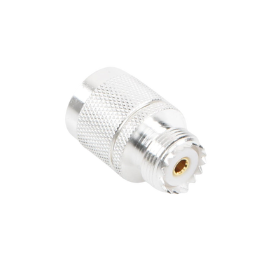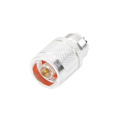 Adaptador en línea RFN-1035-1 Conector N macho a UHF hembra Cuerpo de bronce plateado Contacto central de oro Aislante de teflón Conexiones duraderas Diseño en línea
