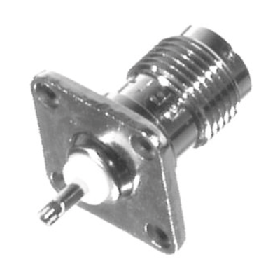 Conector TNC Hembra para Chasis de 4 Perforaciones de 13 mm, Contacto-Berilio Cobre Soldable, Níquel/ Oro/ Teflón.