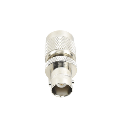 Adaptador en línea RFT-1231 TNC macho a BNC hembra Cuerpo de bronce niquelado Contacto central de oro Aislante dieléctrico de teflón Alta calidad y compatible con conectores TNC y BNC