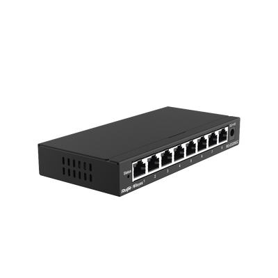 Switch administrable RG-ES208GC 8 puertos 3 años de garantía 5V administración en la nube monitoreo remoto. Este router de RUIJIE permite administración en la nube (sin costo) y monitoreo remoto, mejorando la continuidad del servicio en redes.