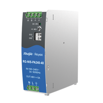 Fuente de alimentación AC/DC RG-NIS-PA240-48 240W Din-Rail Compatible con Switch Montaje Compacto Protección Sobrecarga. Ofrece potencia de 240W, tipo AC/DC, montaje DIN-RAIL, compatible con switches industriales RG-NIS3100-8GT2SFP-HP y RG-NIS3100-8GT4SFP-HP. Diseño compacto y alimentación estable, ideal para equipos industriales.