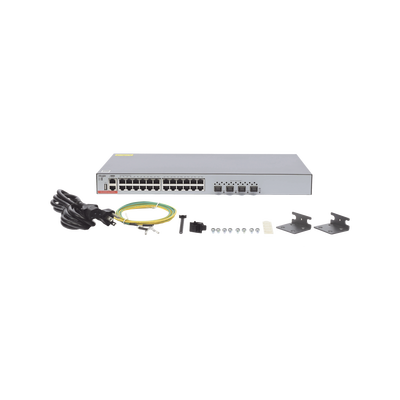 Switch Administrable Capa 3 con 24 puertos Gigabit + 4 SFP+ para fibra 10Gb, gestión gratuita desde la nube.