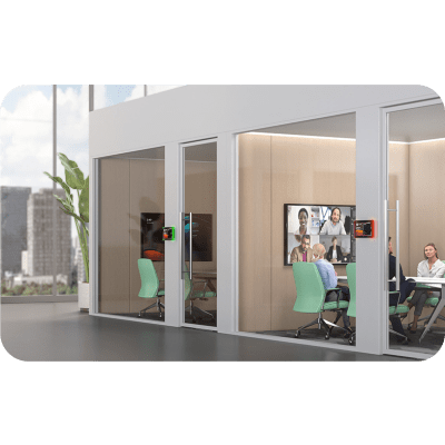 - Barras LED RGB completas para comunicación visible inmediata del estado de la sala