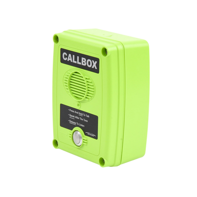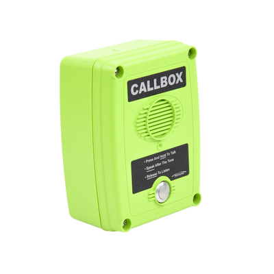 Intercomunicador inalámbrico RQX-411-G UHF 450-470 MHz, con gabinete de uso rudo de policarbonato, sellado para uso exterior, alimentación con 3 baterías tipo D (no incluidas) o adaptador externo, y volumen ajustable. Ideal para comunicación directa en áreas que requieren acceso rápido y diseñado para ser instalado en exteriores. Provee una forma rápida y accesible de comunicación.