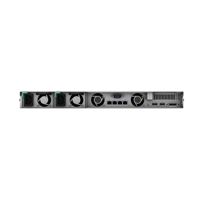 RS820RPPLUS incorpora 4 puertos LAN de 1GbE que admiten Link Aggregation y conmutación por error. Synology High Availability proporcionas un fiable clúster de servicio activo y pasivo que maximiza el tiempo de actividad del servicio. Además esta equipado con dos fuentes de alimentación redundantes para ofrecer continuidad del servicio.
