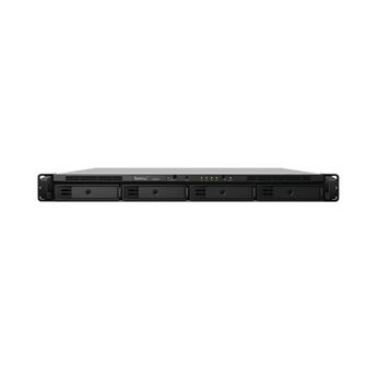 Servidor NAS RS820RPPLUS de Synology, una solución robusta para empresas con capacidad de almacenamiento de 4 bahías expandible a 8 (hasta 128 TB). Equipado con procesador Intel Atom C3538 de 2.1 GHz, 2GB de RAM DDR4, y soporta RAID Synology Hybrid RAID para copias de seguridad seguras y eficientes.