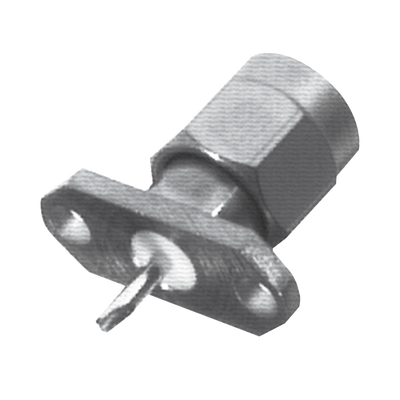 Conector SMA Macho de 2 Perforaciones, Montaje en Panel con Terminal Soldable, Níquel/ Oro/ Teflón.​