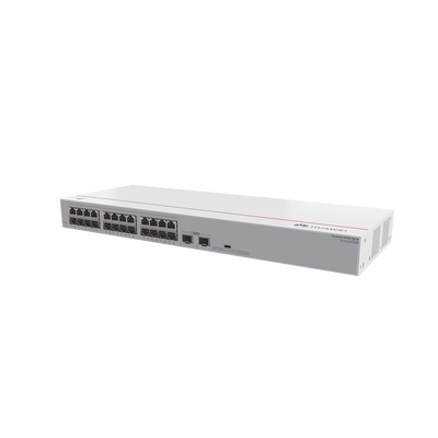 - Puertos: 24 x 10/100/1000BASE-T, 2 xGE SFP
