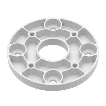 El SBP-004PBW es un convertidor de montaje especializado diseñado para adaptar dispositivos con un patrón de orificios PCD de 4" (101.6 mm) a estructuras de montaje con orificios PCD de 4.75" (120.65 mm). Este componente mecánico de alta precisión está fabricado en aluminio robusto, garantizando integridad estructural en instalaciones de cámaras PTZ rugerizadas. Su diseño circular facilita una transición segura y alineada entre la base de la cámara y el soporte de pared o techo. Es una solución crítica para ingenieros de sistemas que requieren compatibilidad mecánica exacta en entornos de videovigilancia profesional.