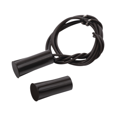 El Sensor magnético para ventanas y puertas consta de un imán y un reedswitch (interruptor magnético). Este sensor funciona como un switch normalmente cerrado (mientras hay campo magnético). Cuando la puerta o ventana se abre, el circuito eléctrico también se abre y es posible detectar la apertura de la misma.