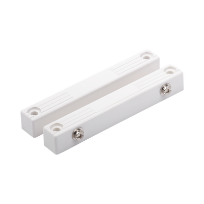 El Sensor magnético para ventanas y puertas consta de un imán y un reedswitch (interruptor magnético). Este sensor funciona como un switch normalmente cerrado (mientras hay campo magnético). Cuando la puerta o ventana se abre, el circuito eléctrico también se abre y es posible detectar la apertura de la misma.