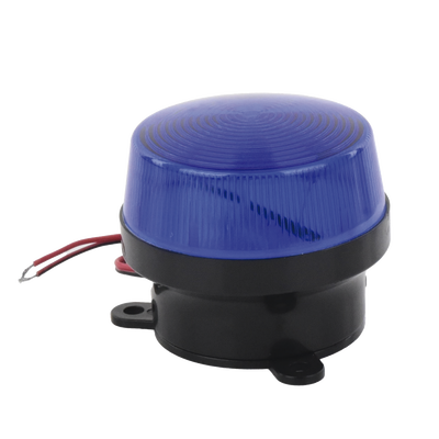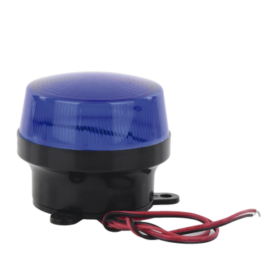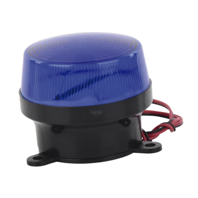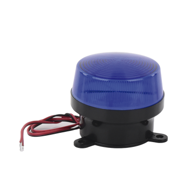 Mini estrobo SF-STRB 12vcc 150ma 90 destellos por minuto, ideal para aplicaciones en interiores. Con un voltaje de operación de 12Vcc y un consumo de solo 150mA, este producto garantiza larga vida y bajo consumo de energía. Su diseño incluye un soporte para fácil montaje y está disponible en colores llamativos como azul, rojo y amarillo.